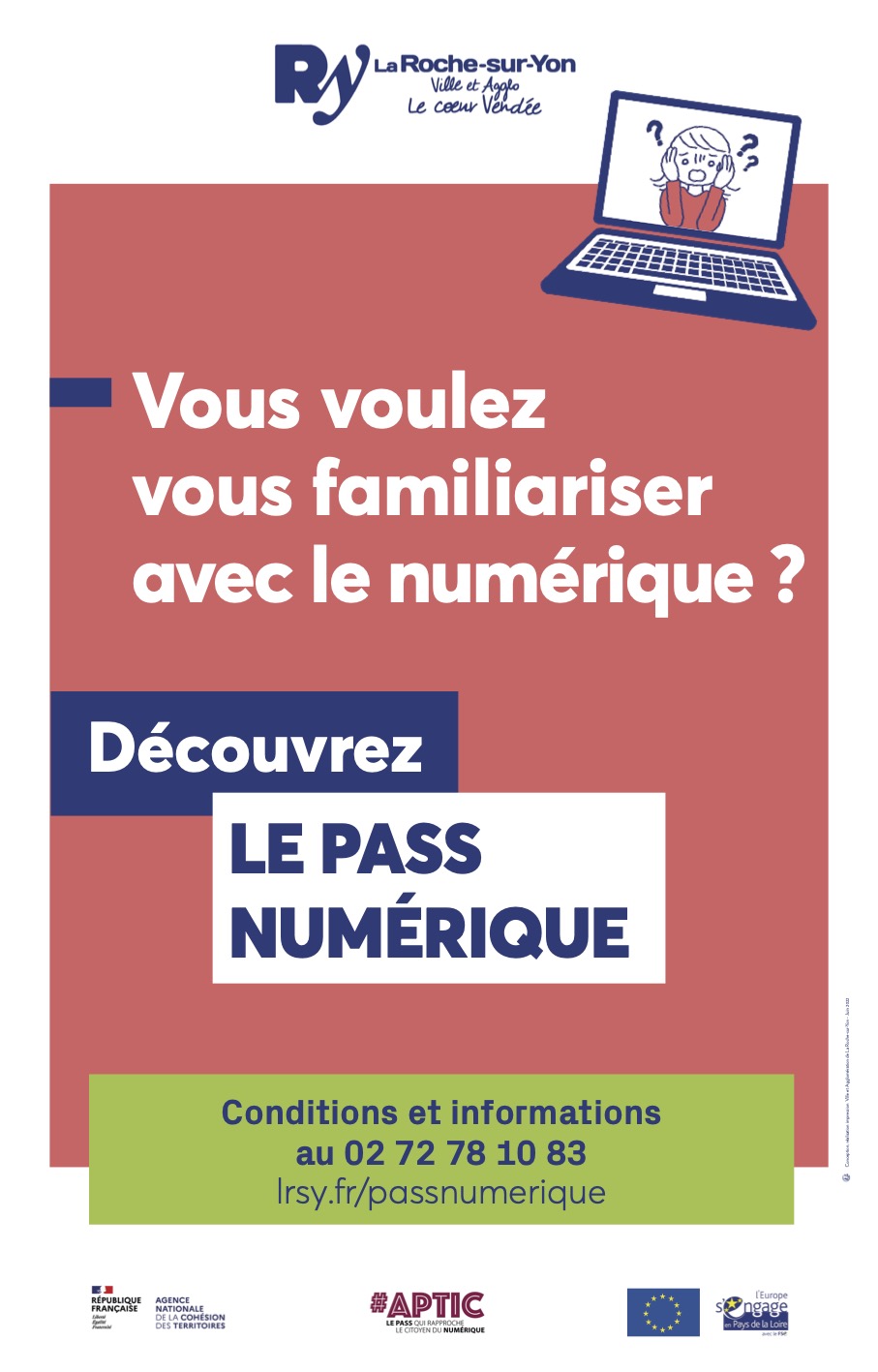 Le Pass numérique est un dispositif en faveur de l’inclusion numérique déployé depuis janvier 2021 par le Service Emploi-Insertion de la Ville et de l’Agglomération de la Roche-sur-Yon, à destination des personnes en recherche d'emploi.