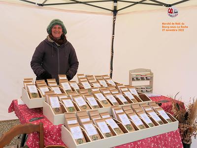 Aurore est productrice au Tablier de plantes aromatiques et médicinales. Les plantes sont cultivées dans le respect des sols et de la biodiversité. Les récoltes de plantes sauvages sont réalisées en prenant soin de trouver des lieux exempts de pollution et la cueillette est pratiquée de manière responsable. Les plantes sont séchées afin de composer des mélanges de tisanes ou aromates qui sont distribués dans différents points de vente.